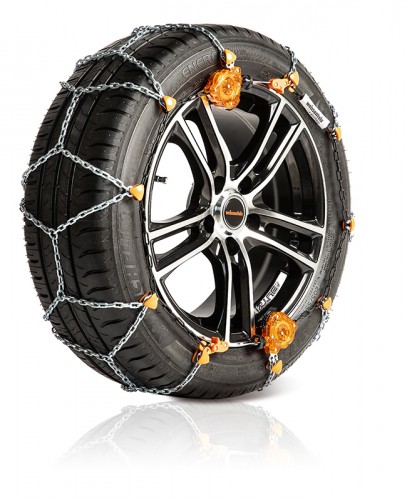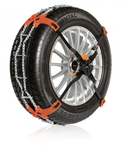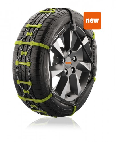 Chain created for the compact SUV generation. Automatic centring and tensioning by means of an automatic ratchet. Without any parts that cut across the rim.